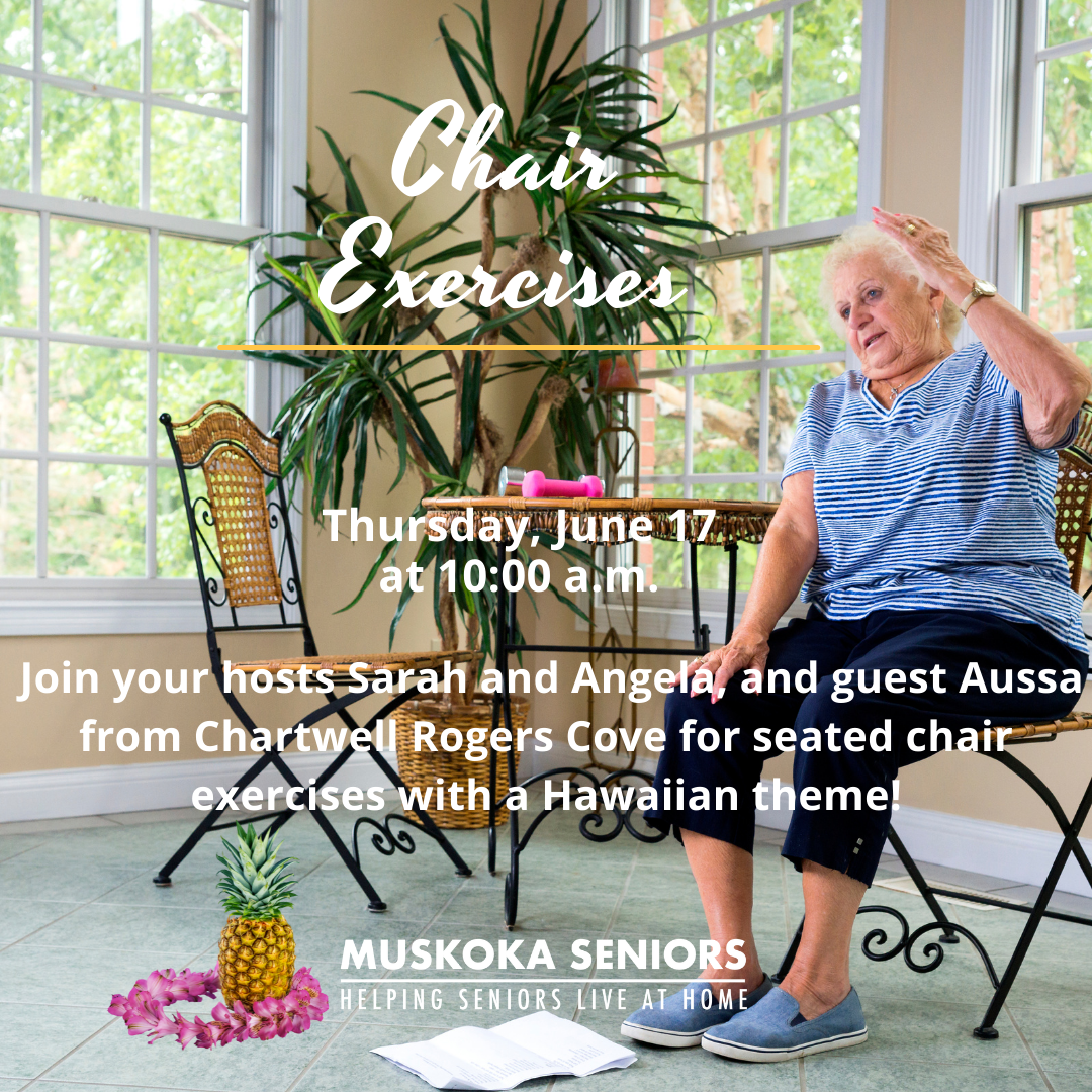 Join your hosts Sarah and Angela, and guest Aussa from Chartwell Rogers Cove as she leads us through seated chair exercises, for our monthly fitness fun! This month’s theme is Hawaiian. Following that, we will exercise our minds with some trivia and games.