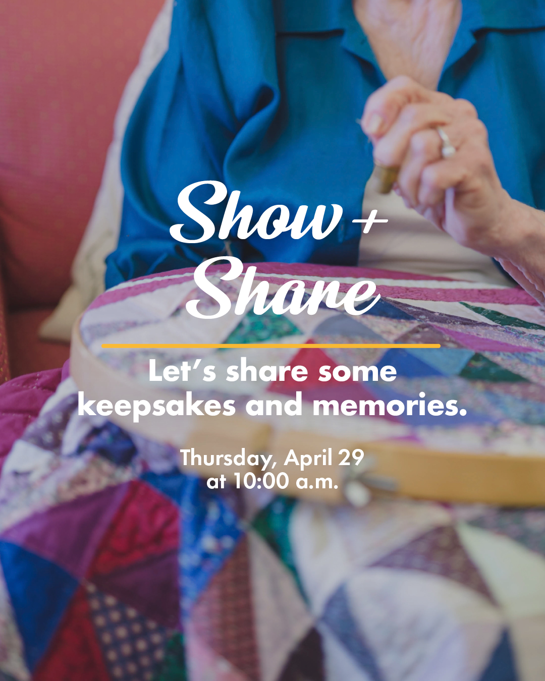 Join your hosts Angela and Sarah for a “show and share” zoom session! We invite you to select a special keepsake. The choices are endless but what is the one keepsake you have that means the most to you? Select just one and you will have the opportunity to share that keepsake and its meaning to you with others in attendance.