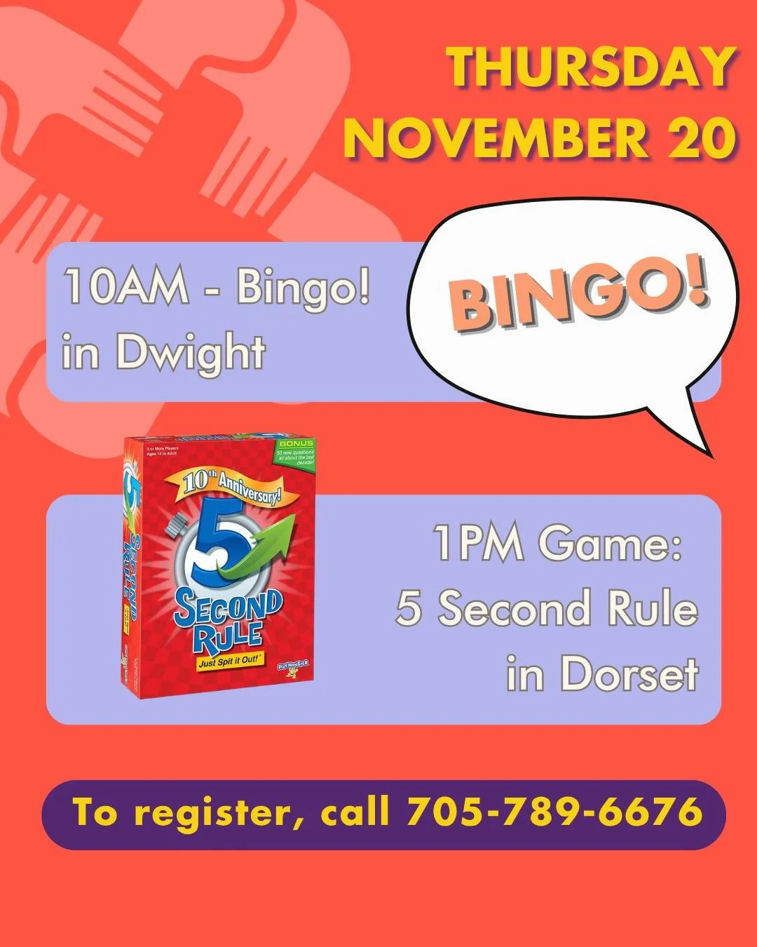 Please call 705-789-6676 to register